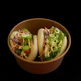 2x pulled pork, bbq umak, coleslaw, mladi luk, slatko ljuti umak, prženi luk